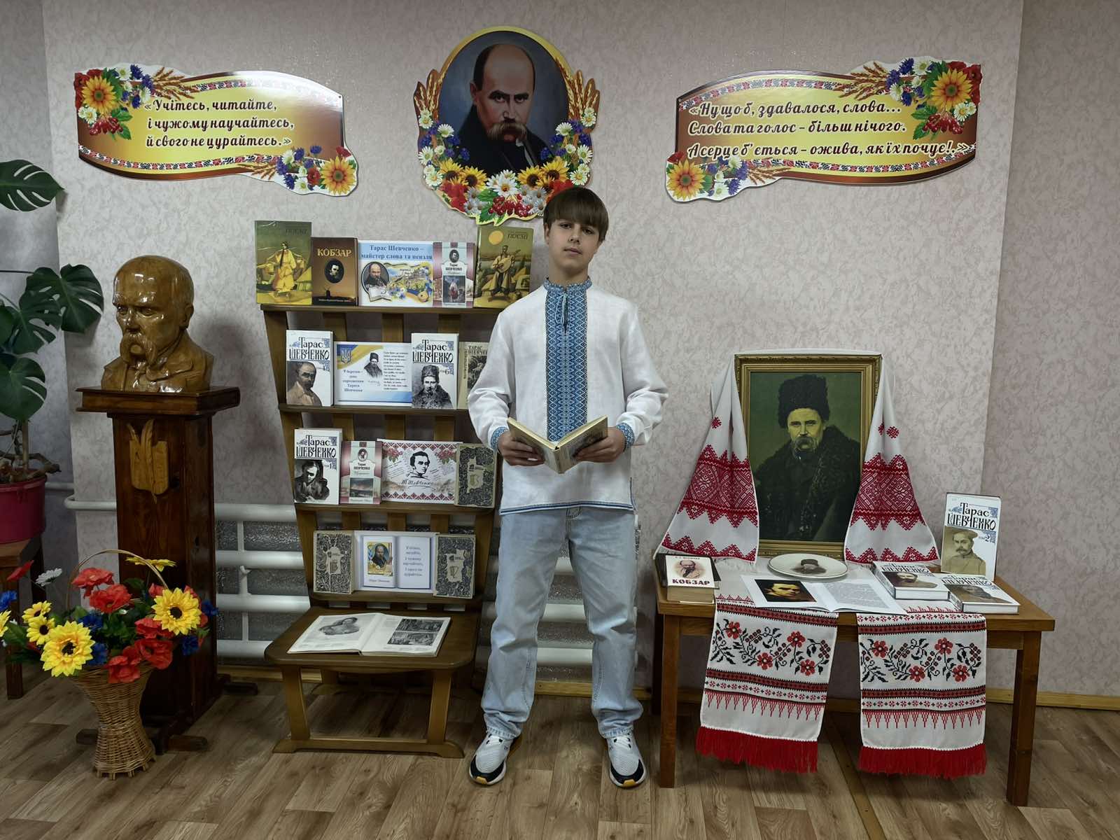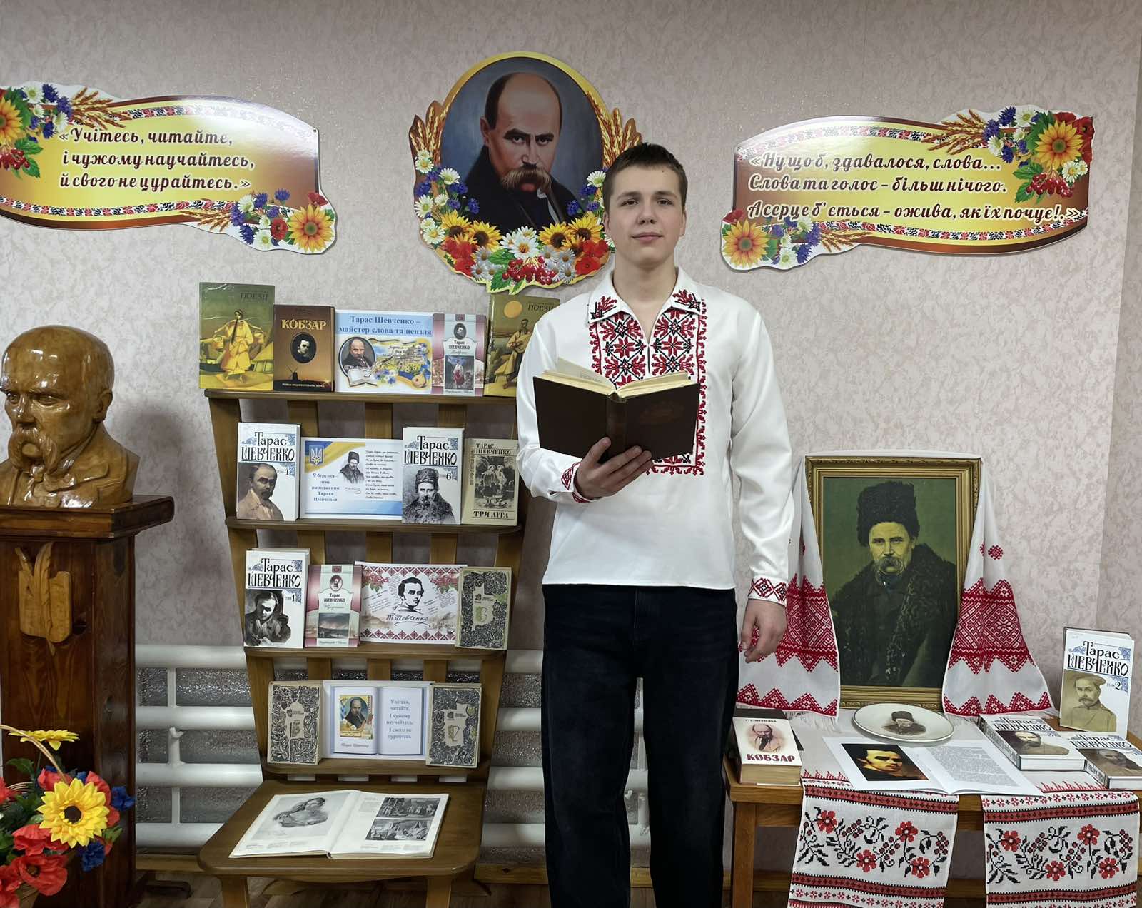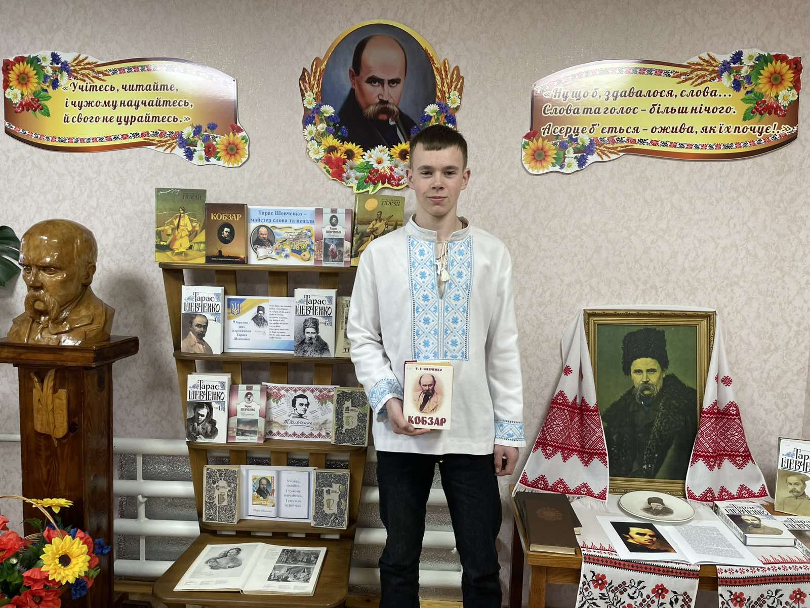 Ім’я Тараса Григоровича Шевченка є символом нашої України. Визначенням її сили, духу, нескореності та прагнення до свободи. Слово Шевченка звучить сьогодні, надихаючи нас у ці складні, воєнні роки бути сильними та незламними. З нагоди 212-ої річниці від дня народження Кобзаря в бібліотеці звучали поетичні рядки «І мертвим, і живим, і ненародженним, землякам моїм в Украйні і не в Украйні моє дружнєє посланіє», де Тарас Шевченко дає нам надію на краще: