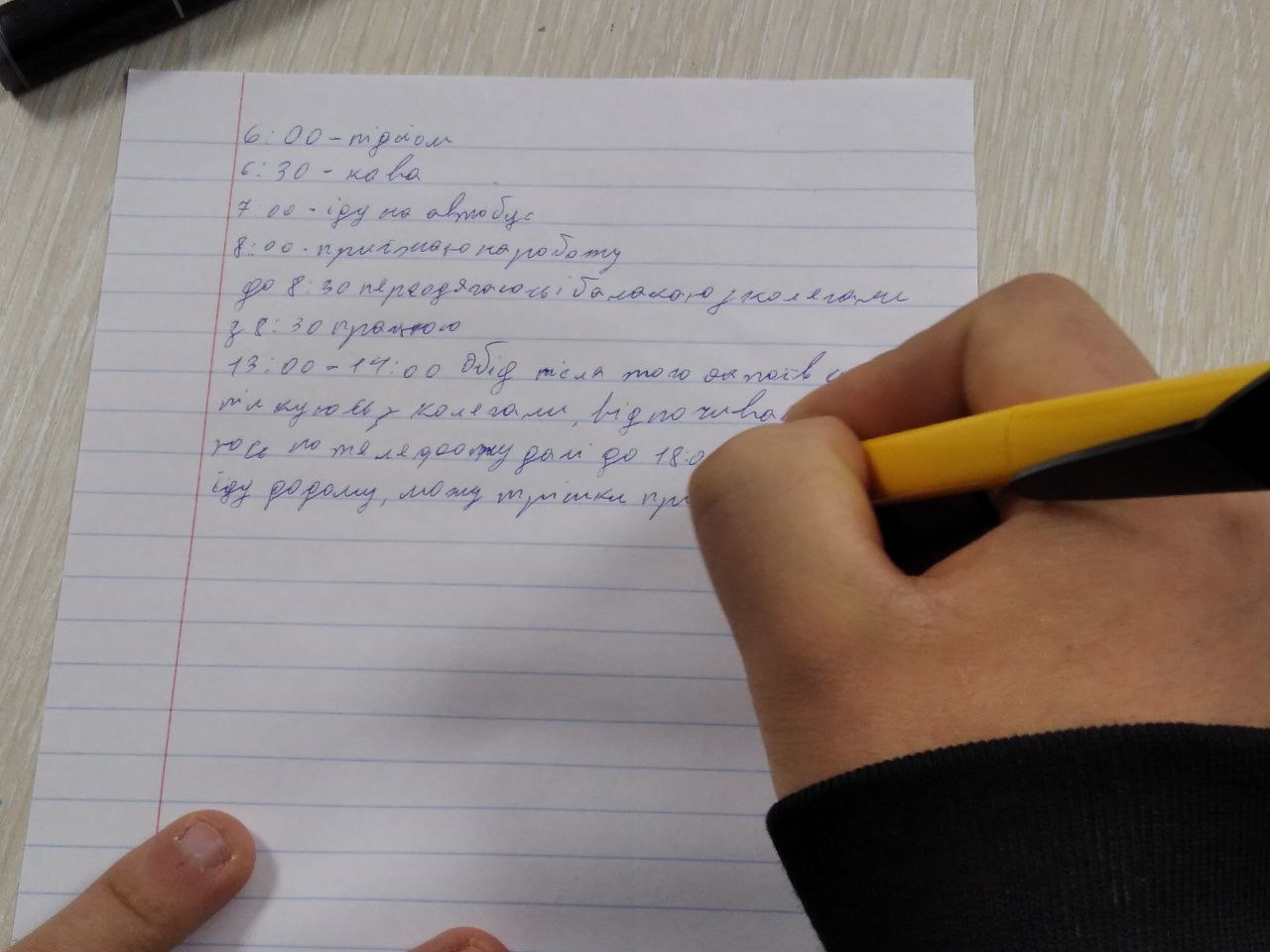 Під час проходження рівня 4 «Ментальне здоров’я» юнаки складали ідеальний розклад дня, який включає не тільки роботу, а й «ритуали». Це протидія стресу.
