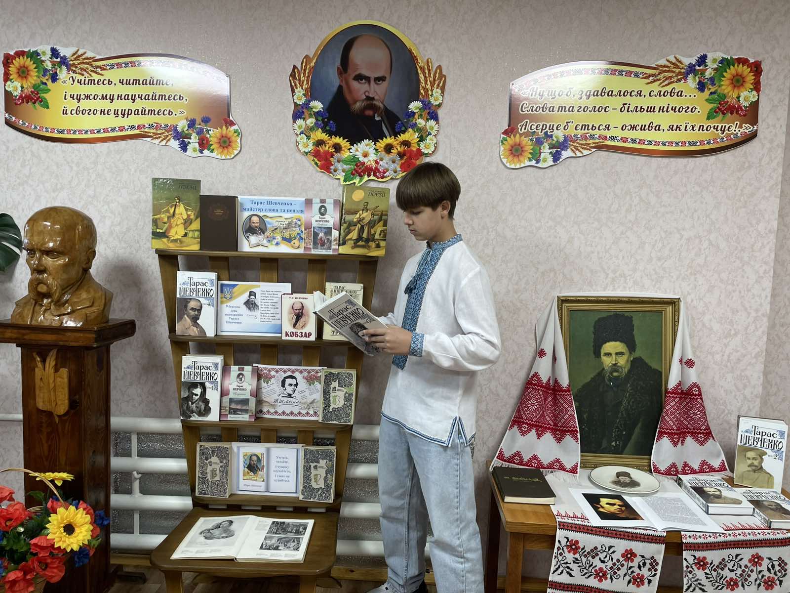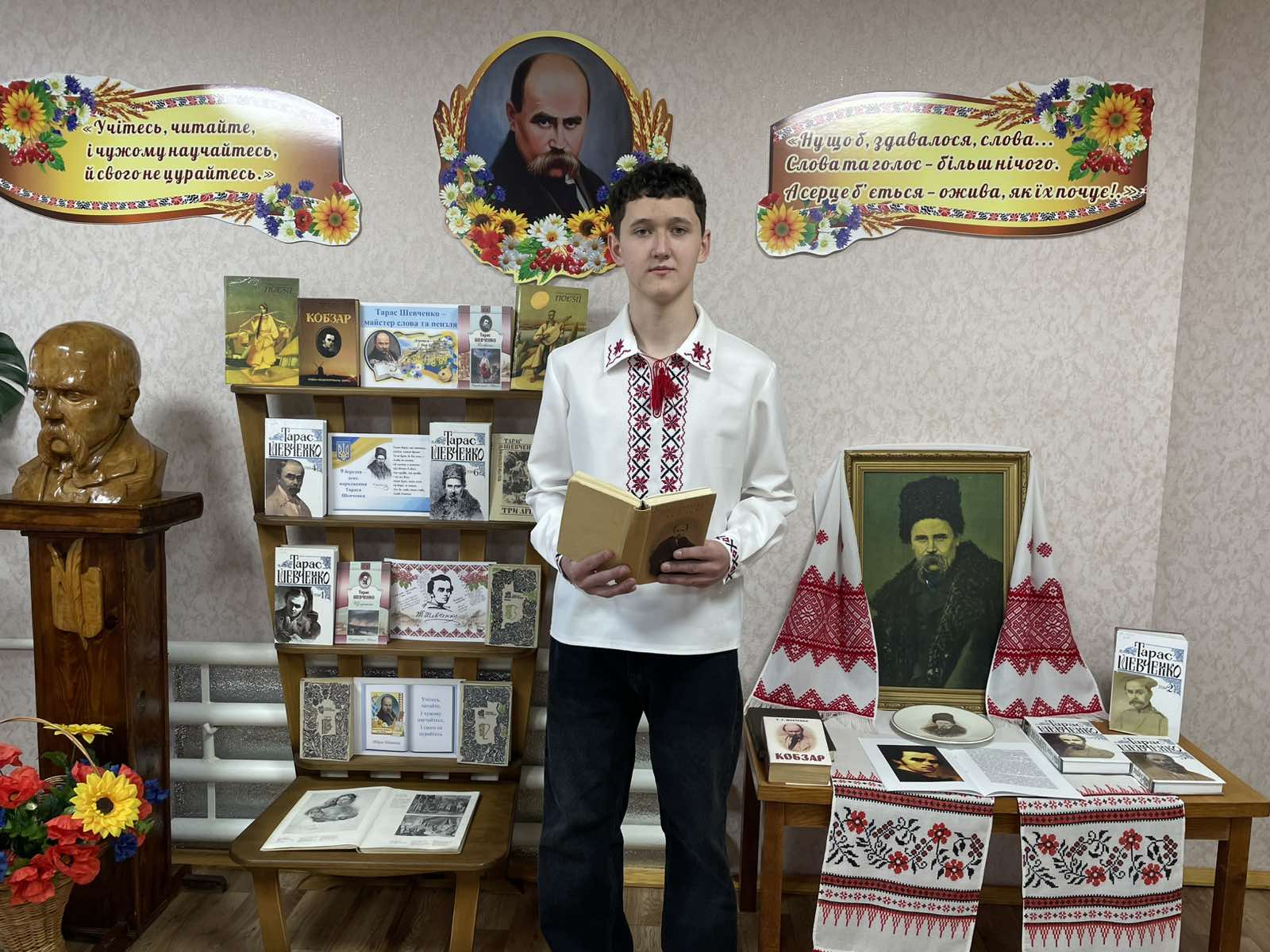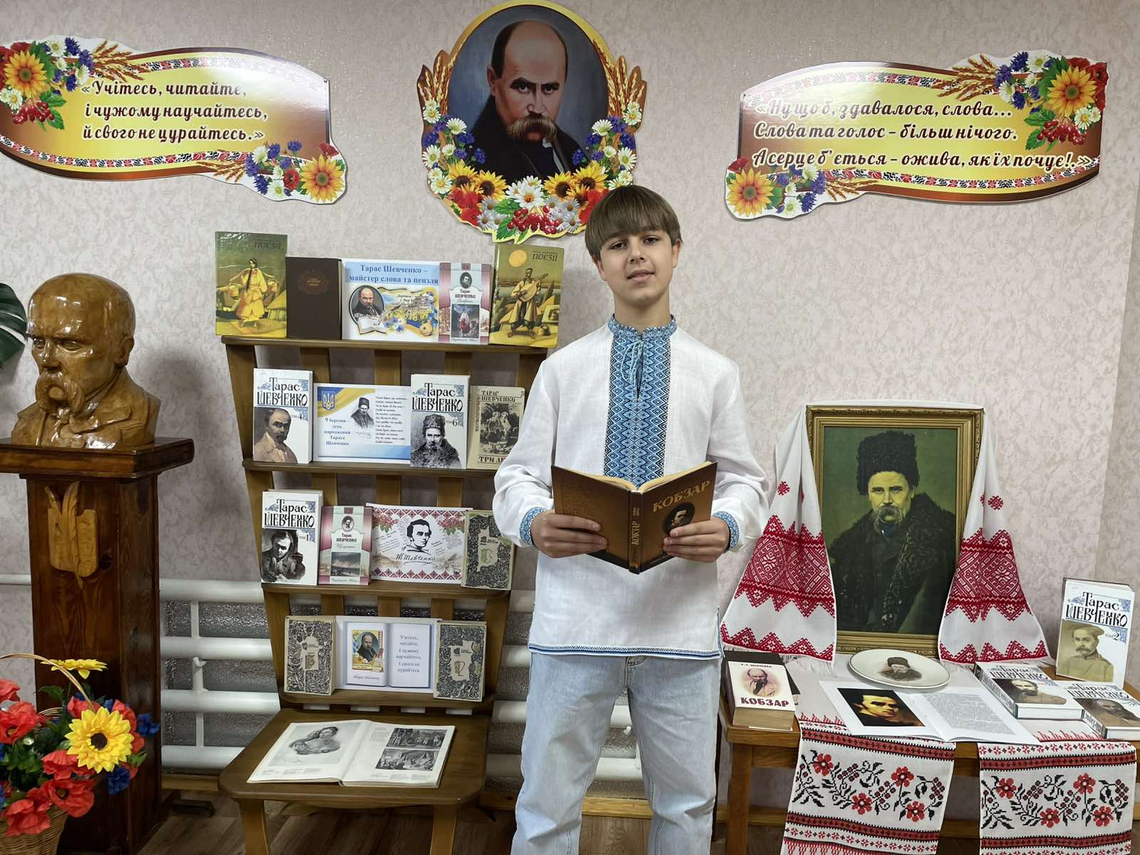 Ім’я Тараса Григоровича Шевченка є символом нашої України. Визначенням її сили, духу, нескореності та прагнення до свободи. Слово Шевченка звучить сьогодні, надихаючи нас у ці складні, воєнні роки бути сильними та незламними. З нагоди 212-ої річниці від дня народження Кобзаря в бібліотеці звучали поетичні рядки «І мертвим, і живим, і ненародженним, землякам моїм в Украйні і не в Украйні моє дружнєє посланіє», де Тарас Шевченко дає нам надію на краще:
